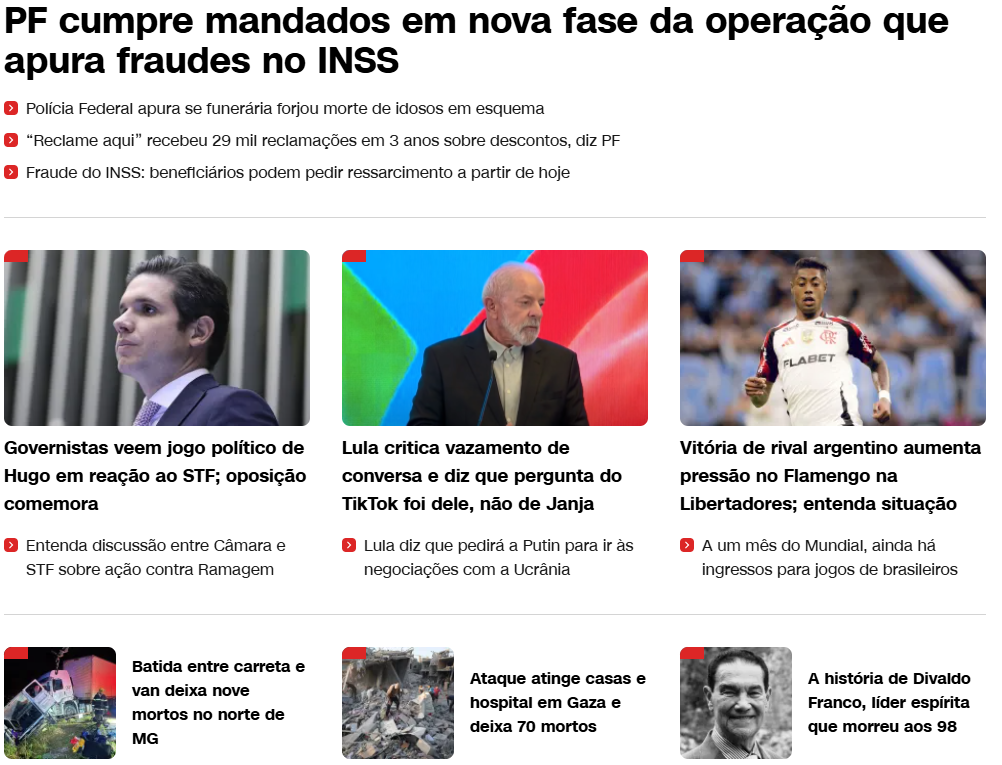 Caso a primeira chamada não tenha mídia destacada, o layout se ajusta, deixando o título maior.